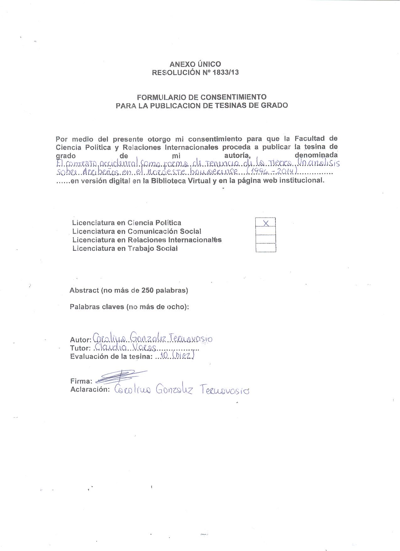 El contrato accidental como forma de tenencia de a tierra: un análisis sobre Arribeños en el noroeste bonaerense 1996-2014